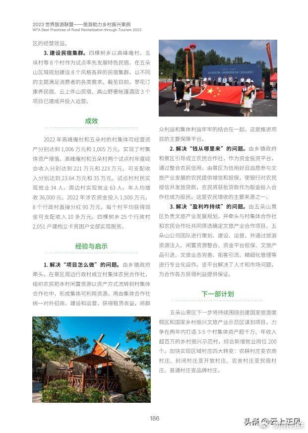 五朵山景区入选《2023世界旅游联盟——旅游助力乡村振兴案例》