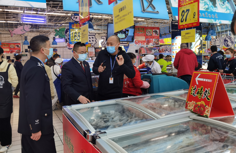 对兴义市规模较大的超市“大润发”进行查看时,首先对超市的疫情防控措施进行检查,发现该超市无论是理货员、收银员都全程规范佩戴口罩,同时对进入超市的人员按要求查看“健康码”和“行程码”,并要求佩戴口罩。检查组着重对食品有无标识、生产日期、是否超过保质期、售卖的水果和蔬菜是否变质等问题开展检查。同时重点查看冷链食品相关防疫检测及进货凭证、核酸检测报告、外包装消杀记录等食品安全信息,详细了解冷链食品运输、贮存、销售等管理情况以及从业人员防护等管控措施。根据超市工作人员介绍,目前超市冷藏商品由总部统一配送,必须具备相关的检验合格证以后才进入门店销售。