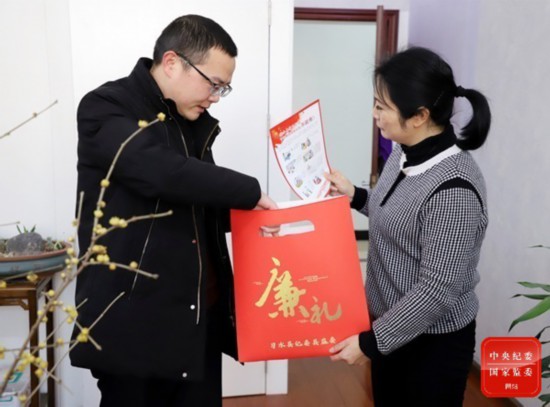 春节将至,贵州省遵义市习水县纪委监委以“节点”为“考点”,紧盯“关键少数”,抓好示范引领。图为习水县纪委监委派驻纪检监察组将廉洁春联、节前廉政提示等集合成“礼”,为所联系权力集中、项目密集、资金聚集的单位党委(党组)“一把手”送上春节“廉礼”。(贵州省遵义市习水县纪委监委 郁安平 摄)