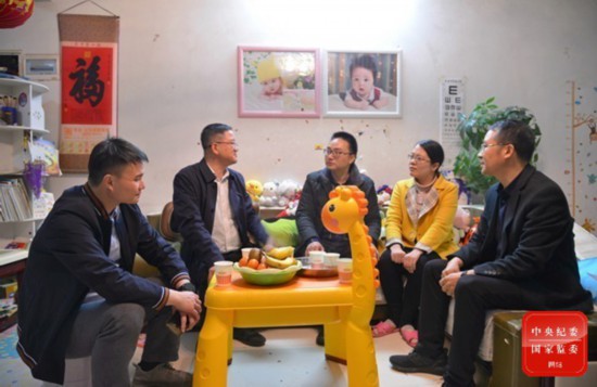 春节前夕,广西壮族自治区柳州市鱼峰区纪委监委紧盯“一把手”和领导班子履职用权,强化政治监督,做实日常监督,督促“一把手”们认真履行好第一责任人职责,把党风廉政建设抓在手上、扛在肩上、落实到行动上。图为该区区委常委,区纪委书记、区监委主任梁海静带队到区住建局党组书记、局长黄小磊家中开展“一把手”廉政家访。(广西壮族自治区柳州市鱼峰区纪委监委 覃缘拿 摄)