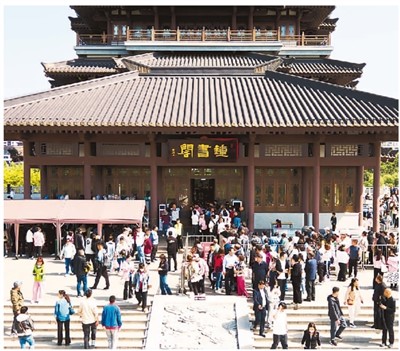 日前,山东淄博的绿水青山系列文旅产品游持续升温。图为游客打卡网红书店海岱楼钟书阁。 |