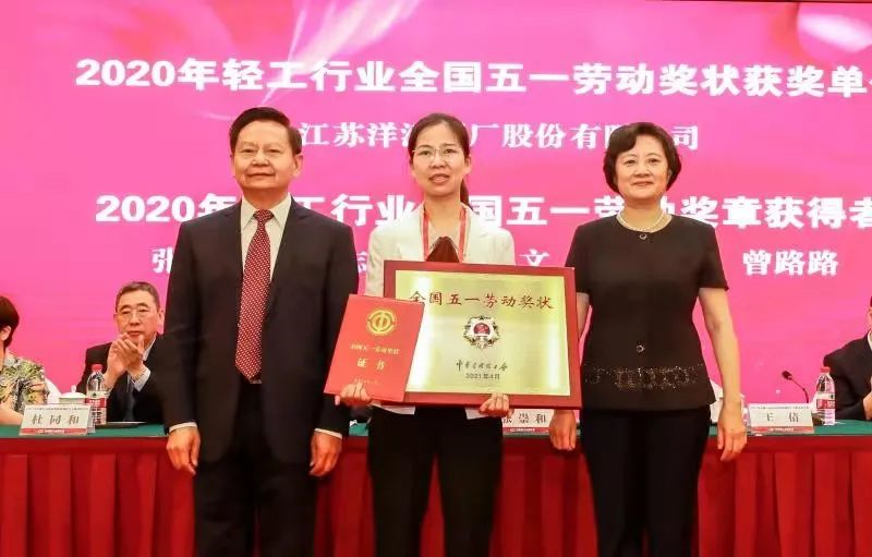大会为2020年轻工行业全国”五一“劳动奖状和奖章获得者举行了授牌仪式。