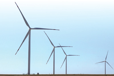 哈萨克斯坦札纳塔斯100兆瓦风电项目,是中哈合作的中亚最大风电项目。图为札纳塔斯风电场风机。 |