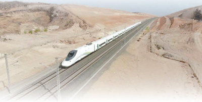 沙特麦加—麦地那高铁列车行驶在由中铁十八局承建的K38标段上。 |