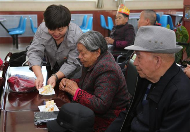 2019年9月27日,在沙沨(左一)的带领下,城西区检察院检察官志愿者服务队来到西宁市社会福利院开展主题党日活动,为福利院的老人们送去节日祝福和慰问。