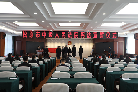正义之声网 日前,松原市中级人民法院组织开展宪法宣誓活动,新任命的审判员、中层正职领导干部以及新入额的员额法官等人参加本次活动。