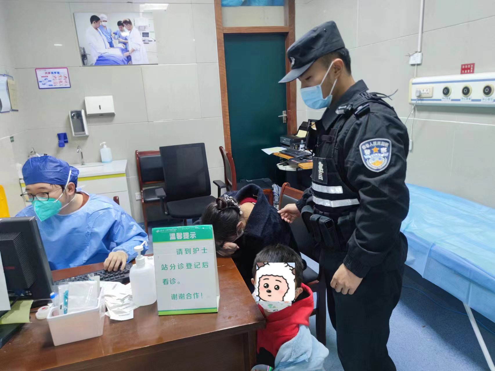 “警察同志,我肚子疼得受不了,能不能把我送到最近的医院?”近日一天晚上9点,在水果湖武装驻巡岗前,司机张女士(化姓)驾车期间突发阑尾炎,将车停在路口,双手捂住小腹痛苦不堪,车上还有她3岁的儿子,正在执勤的90后特警郭夏阳、熊可尧见状,毫不犹豫地上前紧急救助,申请替岗后秒变“代驾”将女子送医救治,直到女子打完吊针送其安全回家后才返回。“谢谢警察叔叔!”临别之际,3岁男孩轻声地对两名特警表达着感谢。