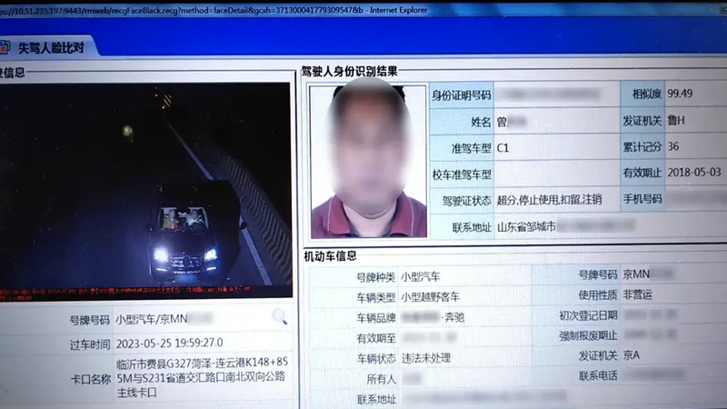同时,民警对曾某做进一步审查发现,该驾驶人因醉酒驾驶被取保候审,驾驶证处于吊销状态,现属于无证驾驶。接下来民警对奔驰越野车进行检查,发现奔驰越野车车架号、发动机号等信息均已被篡改过了。